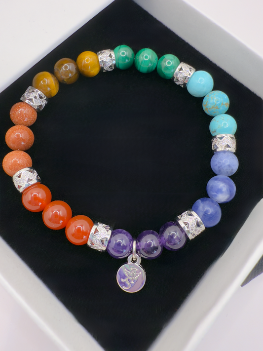 Chakra Bracelet - Dragon Fire Agate, Goldstone, Yellow Tiger Eye, Malachite, Turquoise, Sodalite and Amethyst
